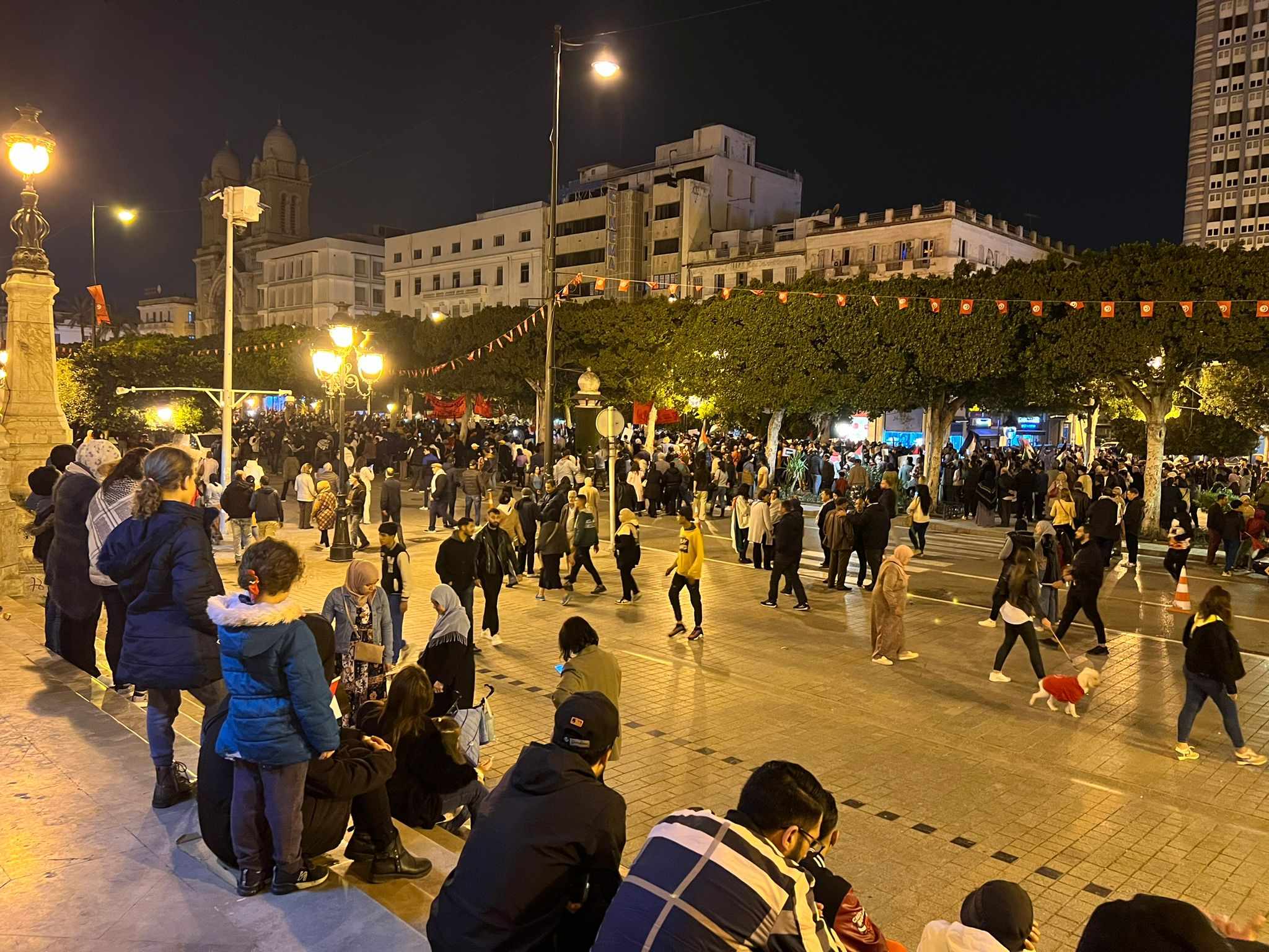 انطلقت المسيرة في تمام الساعة الثامنة والنصف بعد توافد جموع غفيرة، مرددة الهتافات والشعارات التي تدعم القضية ووحدة الصف والدم الفلسطيني، وتأكيداً على حق الشعب الفلسطيني في استعادة أراضيه المحتلة. وصولاً للمسرح البلدي في شارع الحبيب بورقيبة، الذي شهد تجمعاً هائلا من كل المناطق والولايات، منددين بالإبادة والظلم التاريخي الذي يعاني منه الفلسطينيين، مطالبين بتحقيق العدالة والحرية للشعب الفلسطيني.